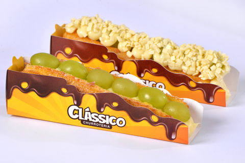 A Clássico Churroteria inovou na produção de churros, elevando os tradicionais a um patamar gourmet, resultando em produtos mais sofisticados e repletos de qualidade, oferecendo uma variedade de combinações de recheios.